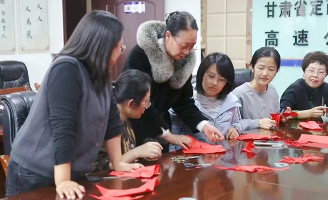 为丰富女职工精神文化生活,弘扬中华传统艺术,3月6日上午,定西公路事业发展中心高速公路养护所开展“探秘非遗”庆“三八”活动。邀请定西市非物质文化遗产保护中心的非遗传承师傅向单位女职工传授剪纸和扎染技艺,为大家带来一场传统非遗体验。