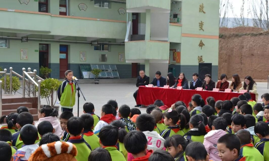 临洮县二十铺小学开展的“国旗下的阅读分享会”(临洮县委宣传部供图)
